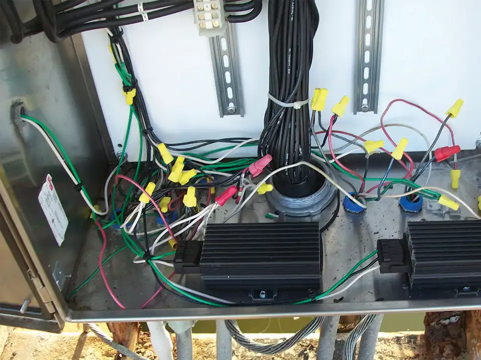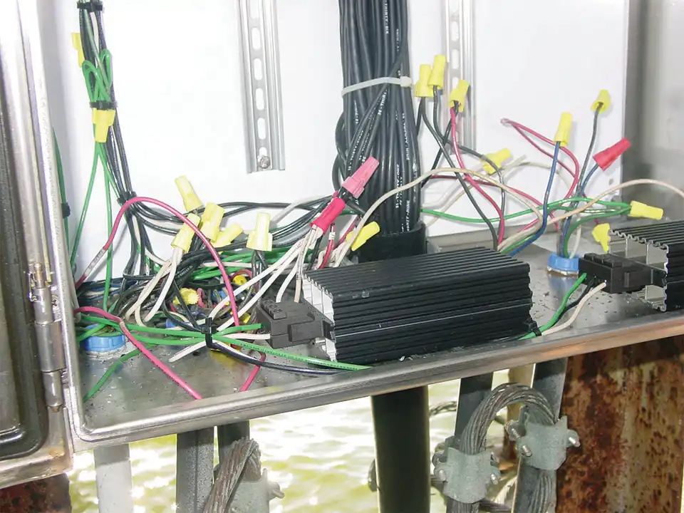 To support these control systems, we installed redundant power sources and protection equipment to ensure continuous operation under all conditions. This level of reliability is crucial in a harbor setting, where electrical failures could disrupt shipping schedules or compromise navigational safety.
